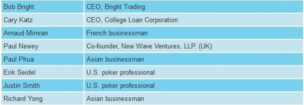 Disse otte navne er ifølge World Series Of Poker de senest bekræftede deltagere: